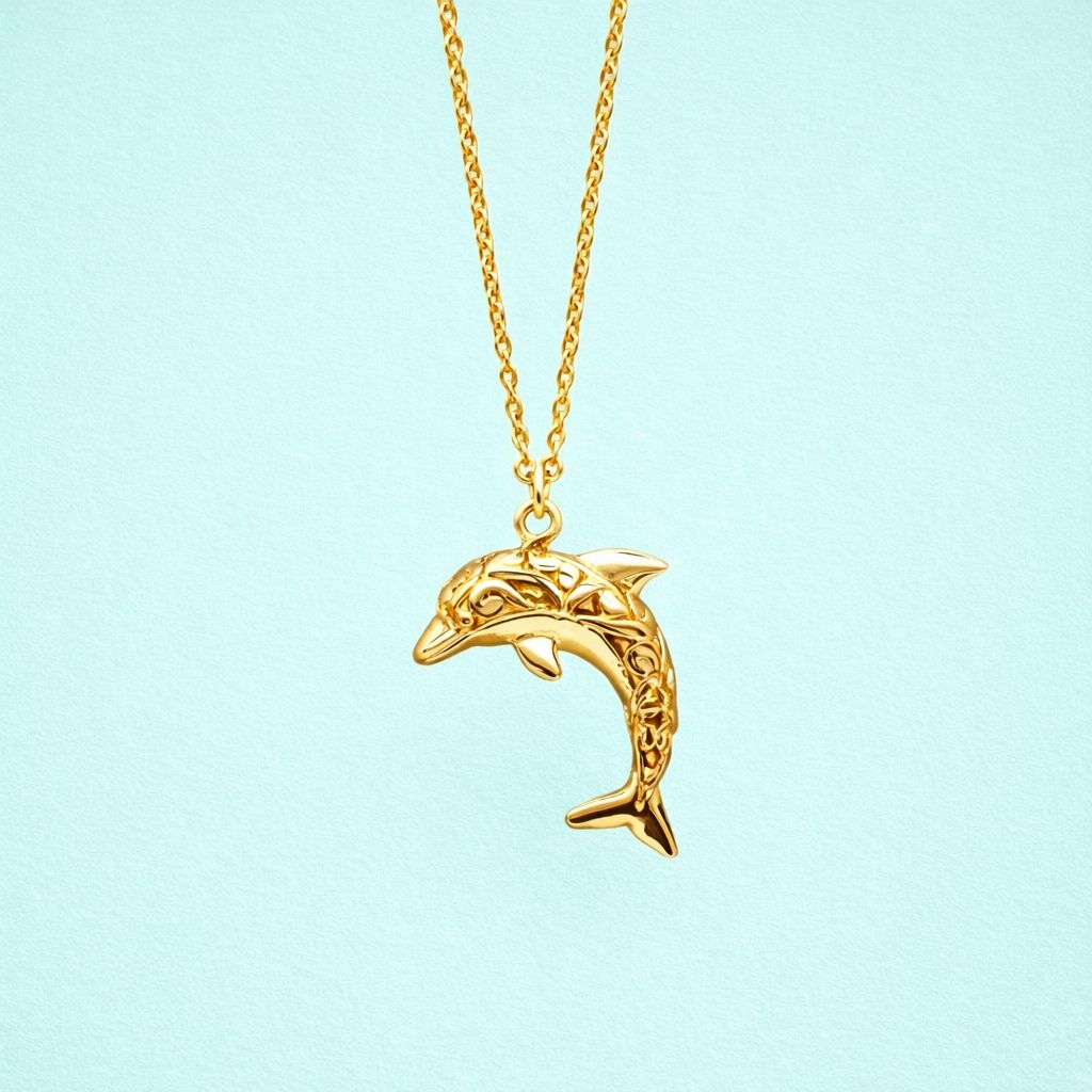 El delfín es juego, conexión y armonía. Representa la inteligencia emocional, la comunicación y el disfrute del presente. Un amuleto para quienes eligen sonreír, fluir y vivir con ligereza incluso en las profundidades