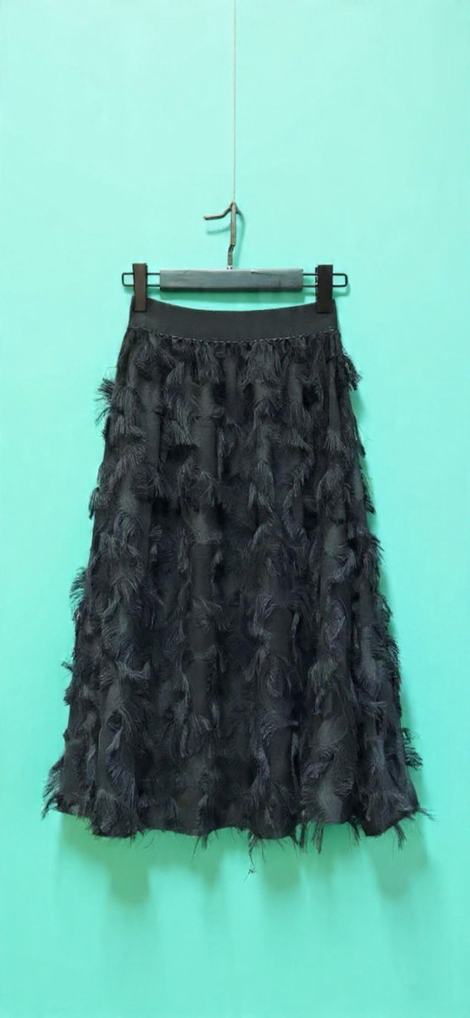 Preciosa falda negra de Plumas.