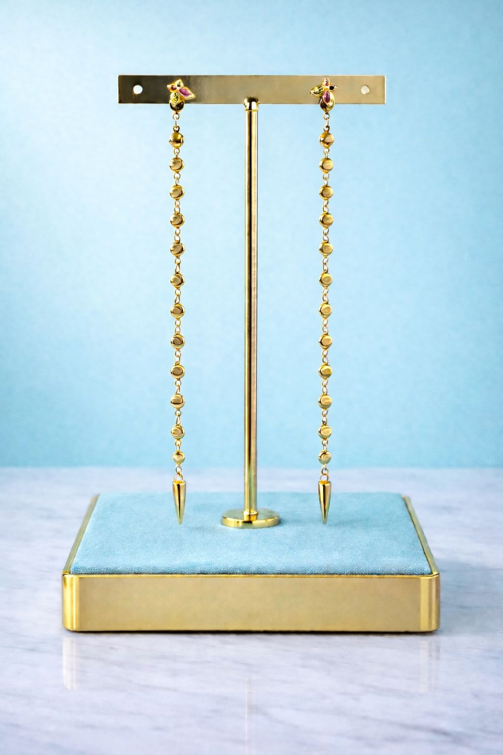 Pendientes extra largos que aportan una luminosidad única, realzando cualquier look con un toque elegante y sofisticado