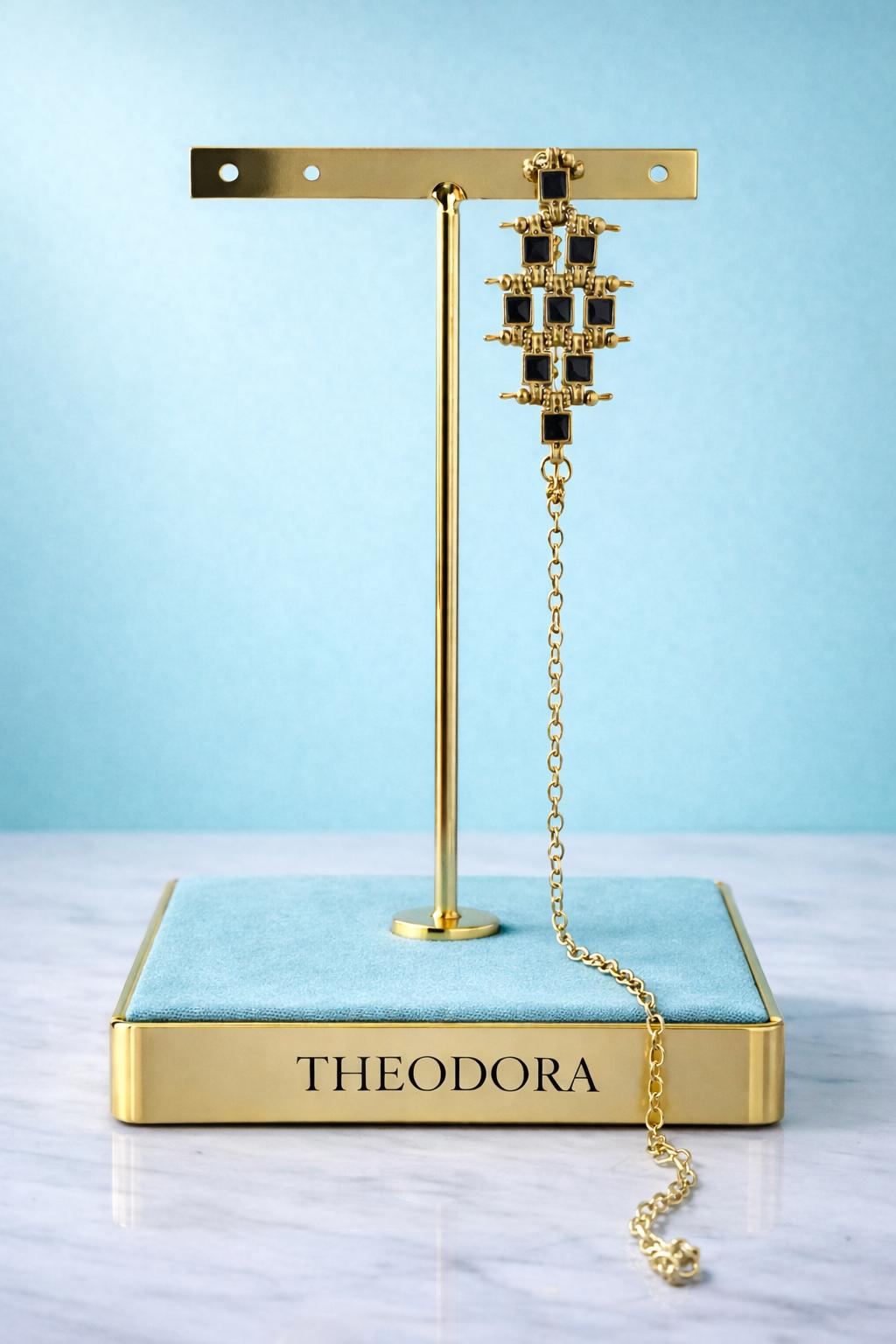 Brillan con un encanto artesanal y exótico. Los pendientes Lulu están elaborados en tono dorado con delicados espejitos en color oscuro que reflejan la luz con cada movimiento. Su diseño colgante, realizado por pequeñas cuentas y una fina cadena que se coloca bordeando la oreja aporta elegancia bohemia y aire fresco.
