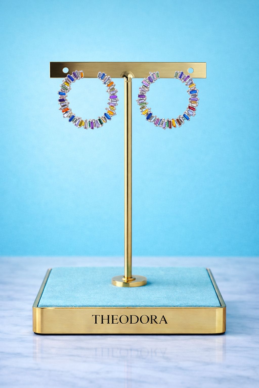 Aros circulares en plata 925 engastados con circonitas de colores vibrantes. Su diseño moderno y festivo atrapa la luz desde todos los ángulos, convirtiéndolos en el accesorio ideal para levantar cualquier look con un toque sofisticado y alegre.
